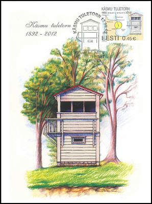 The wooden Käsmu Lighthouse was commemorated by Eesti Post with the release of 0.45 euro stamp on 13-Sep-2012. This is the 22nd stamp in the Eesti Post's Lighthouse Stamp Series.